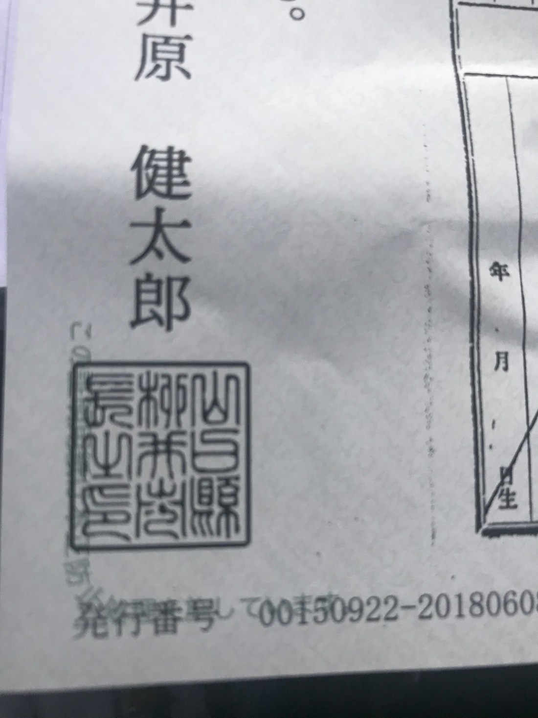 Without more information, we could not determine how closely related my grandparents were. Was my grandmother’s father (Kuniyuki A-kichi, born in 1852, son of Dikki-zo) a cousin of my grandfather’s father (Kuniyuki Tamizo, born in 1861) but whose father is not recorded? A mystery for further search when to travel to Yanai on 16 May. Besides finding my grandmother’s home, I plan on staying a few days to visit our families’ gravesites and to get a feel of the city. I included a close up of my grandfather’s, grandmother’s, and mother’s entries along with the Hanko (official seal) of Yanai City.