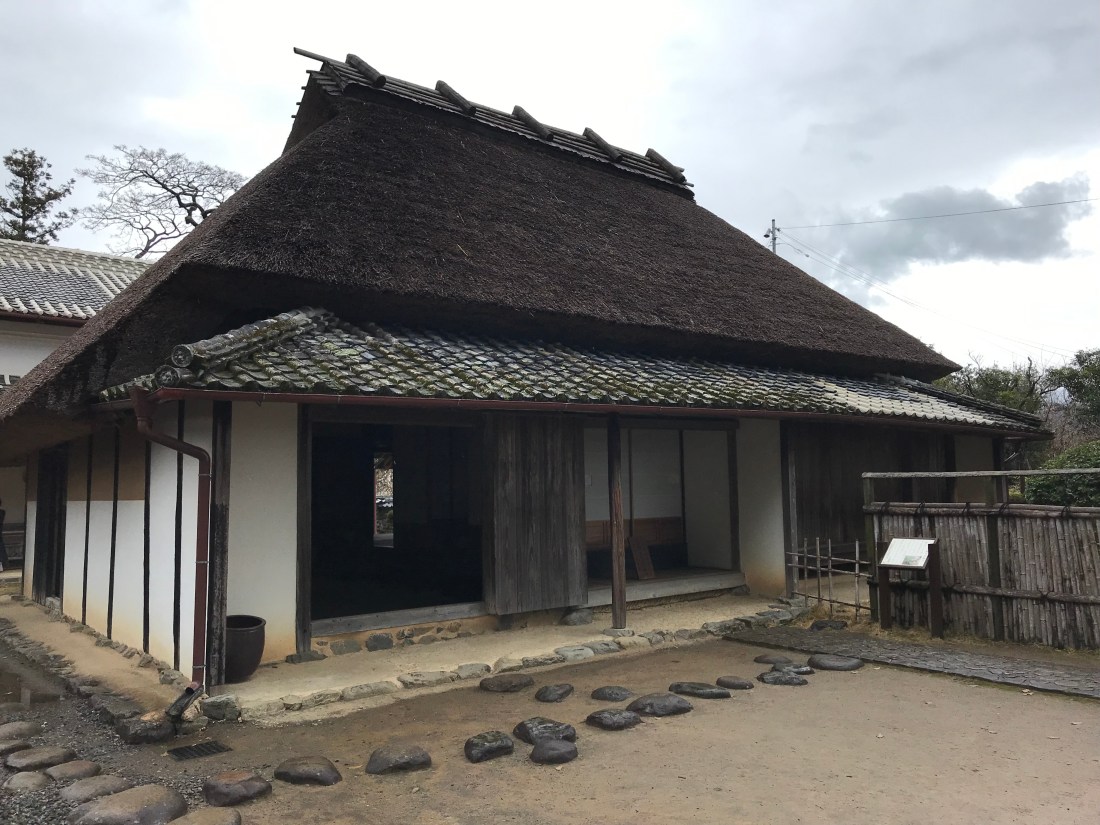 We also took a small detour to visit the boyhood home of Iwasaki Yataro who was the founder of Mitsubishi. This company was one of a handful of companies that built Japan during the Mejii period. These companies were labeled zaibatsu; they were essentially monopolies that eventually helped support the WW2 war efforts. Germany had similar all encompassing corporations such as Krupp and IG Farben. Here is a statue of Iwasaki, his thatched roof boyhood home, and the rock memorial to him. He lived only 51 years.