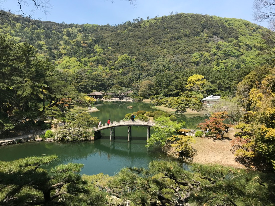 I returned to the Ritsurin Garden. Sharon told me Ritsurin incorporates the mountain as a backdrop. The scenes were from a movie set. Ritsurin is a must for any visitor including pilgrims.