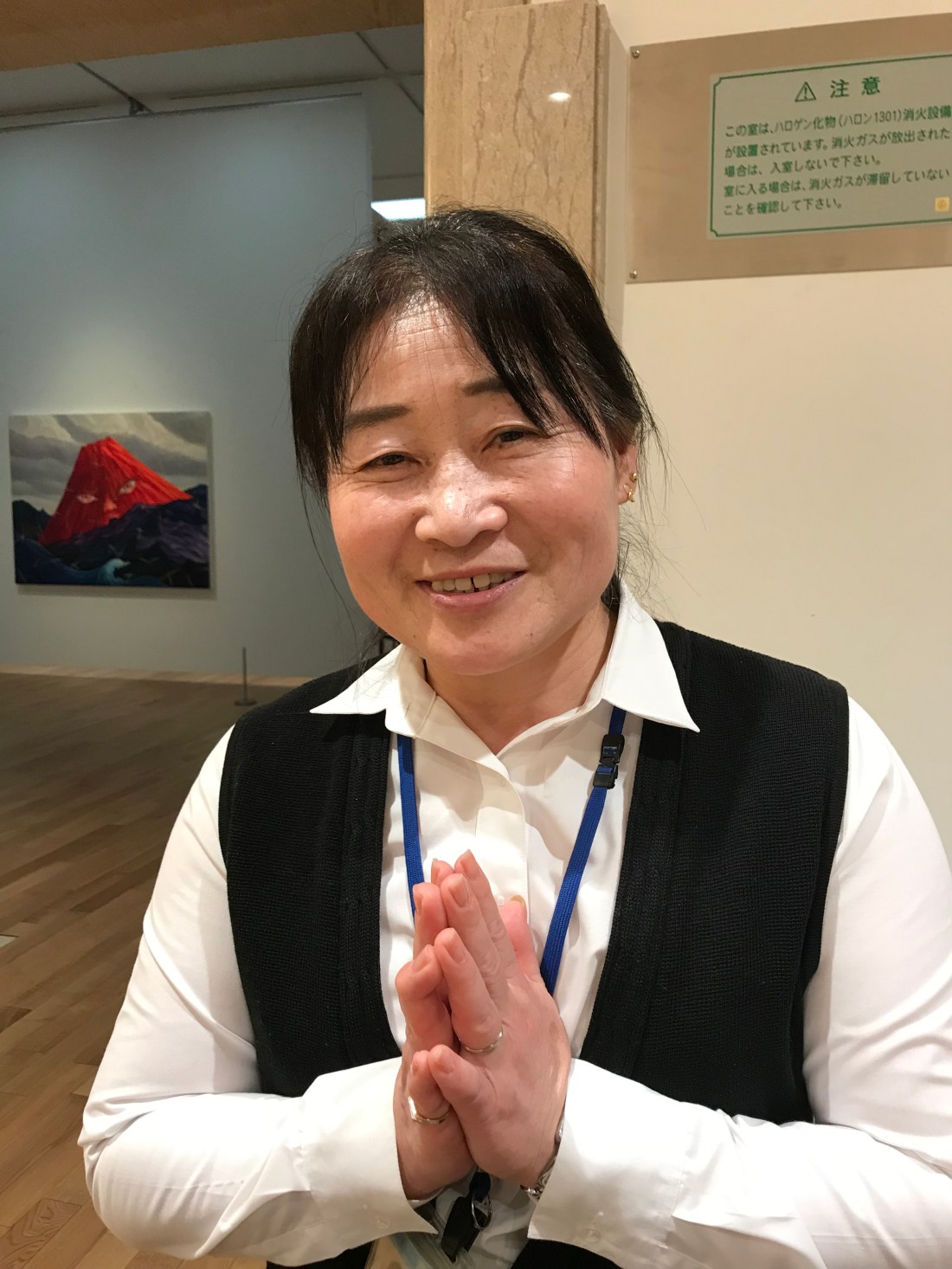 After lunch, I had plenty of time to explore the city. I chose the Takamatsu Art Museum. Only the first floor was open. One gallery displayed prints including a Keith Haring of the Statue of Liberty. Another gallery had pieces of lacquerware from the post-Edo period to the present. No photography was allowed but I took a photograph of a lacquerware piece from the brochure – exquisite. Our lady in the last photo in a very delicate way asked if I was over 65. Yes, admittance, free!