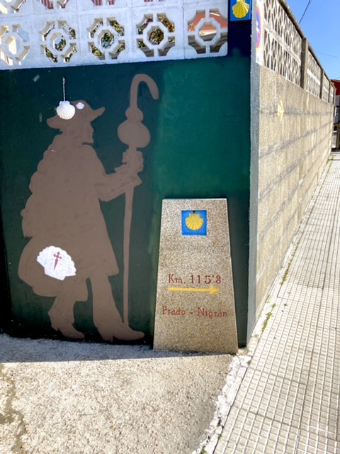 We were closing in on noon. We spotted a restaurant with outdoor tables. Who did we meet for the fourth time – our Canadian friends – Jennifer and John. They are walking free lance choosing hotels each day. They spent the previous night in the mountains and were on their way to Vigo but staying at a different hotel. Coincidence? Is there an Invisible Hand moving pilgrims on the Camino?