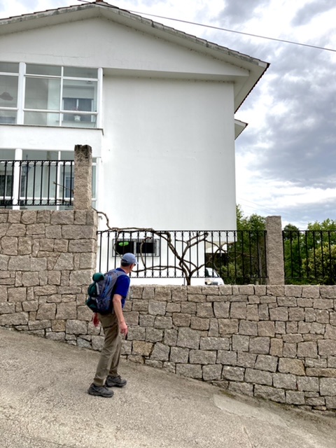Although the length of this segment was less than 20 miles, we agreed that it was the hardest of our camino. The highest and steepest climb was up a mountain from which the picture below was taken. Vigo stretched out before us. About an hour and a half before, we had hiked up the hill in the distance. Towards the end, we had to deal with long grades as we neared Arcade where our hotel was located. I photographed Laird coming down one of the steeper grades to give you a sense of the challenges of the day. What goes up eventually comes down. It was hard on the knees.