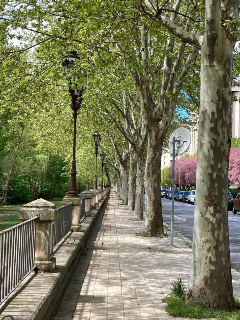 Pilgrims can enter Burgos in two ways: the traditional route on paved streets that cuts through the northern part of the city or the river route that goes along the Rio Arionzon that is flanked on both sides by parkland. The trick is to make the correct left turn to the road that goes around the perimeter of the airport and to find the correct way through the suburb of Castanares. Not easy.