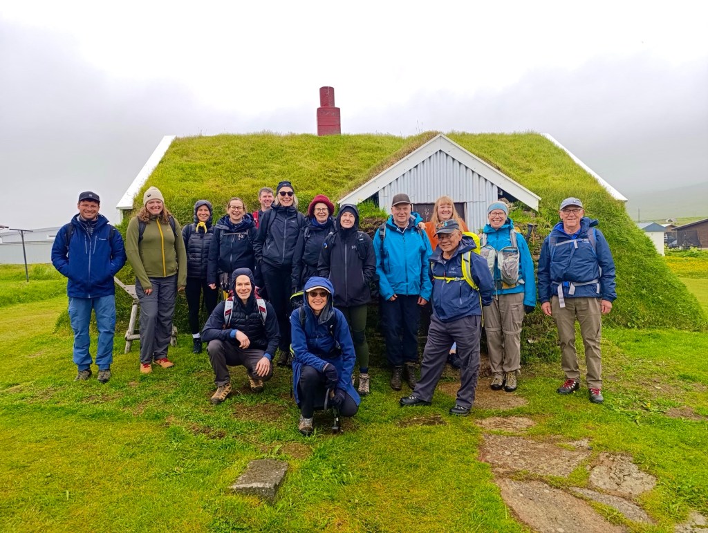 After the brewhouse, our tour took us to the oldest heritage house in this town built in the late 19th Century. This home was way ahead of its time in using natural materials as insulation and protection. We took a group photo in front of it. We are 14 experienced hikers – six from the US, four from Australia, three from Switzerland, and one from England. One happy and eager band of hikers.