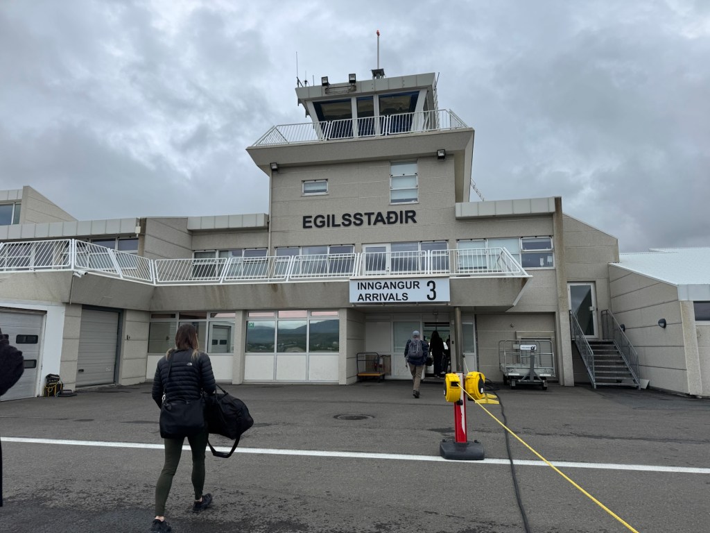 We asked for a taxi at 7:15 AM to be sure that we would be on time for our flight to Egilsstaoir at 8:35. Icelandanders are punctual; our driver pulled up at the front door of our precisely at 7:15. Ten minutes later we entered the terminal; by 7:30, we were checked in, our baggage tagged and on the conveyer belt. When our boarding was announced, we had our boarding passes scanned and we were on board the plane within 5 minutes. The plane’s door closed and we were up in the air at 8:35 AM, the published departure time.
