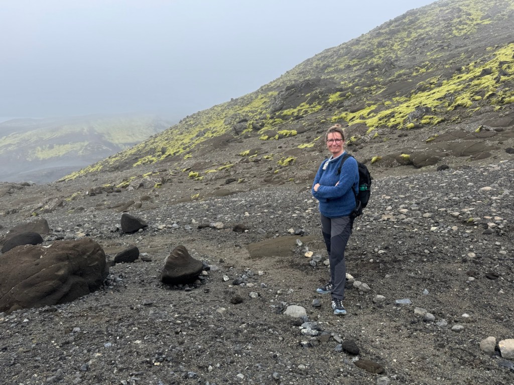 Mt. Laki, never heard of it until today. For almost a year starting in 1783, the mountain created a 15 mile fissure in the earth that produce a massive eruption that created 135 craters. The gases released into the air are said to have caused famine in Europe in 1784 and lost crops throughout that decade. Some historians claim that this prolonged period of famine may have been the catalyst for the French Revolution. The rim of the now dormant volcano was our main goal for this morning.