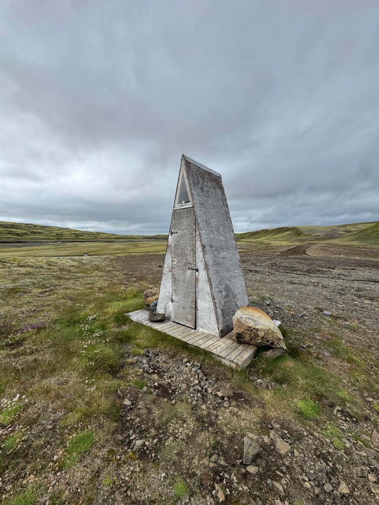 And then, another waterfall. I groaned but this one was one of the best. Herdis asked me how many Laird and I had seen on this trip. Perhaps 150 give or take a few. I know that a few more will be coming up tomorrow. I’ll keep the yawns to myself. But the stop did offer the opportunity to photograph the original style WC found in these parking lots. Newer ones having running water.