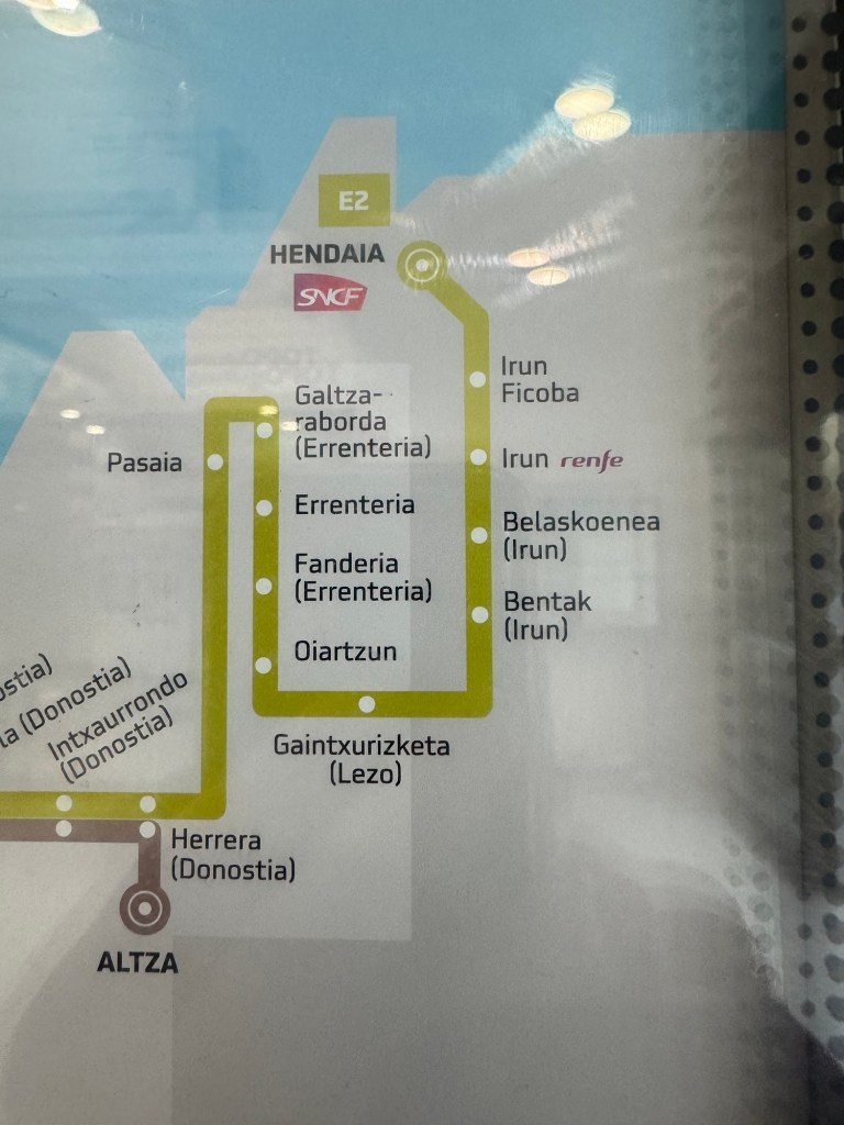 Obtaining a credential was easy. Just go to the information office near the corniche in the Old Town. To get to the French-Spanish pedestrian bridge, walk to the Amaro station (about one mile south from Old Town) – a one way ticket is 2.90 Euros — route E2. Get off at the Irun-Ficoba station, the last stop. Ya Esta. Voila.