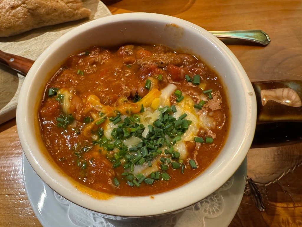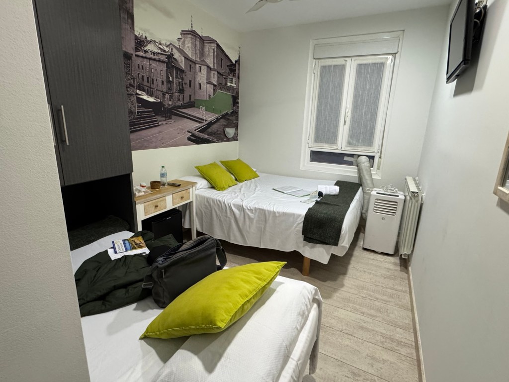 We walked along together and decided to stop for some beer at a B&B along the road. No beer here but iced matte was offered. We were skeptical at first about the drink. Matte is the go to drink in Argentina. But cold matte? This version was delicious and rejuvenated us for the final two miles into Donostia. Here we are with Pedro who also recommended his commune’s restaurant, the Yellow Deli, in the city. Sounds like old hippy language. I suspect that they were. We arrived there at 7:45. No Basque food here. John and I had chili con carne and Daniel, a Reuben. Even in northeastern Spain, the offerings are global.