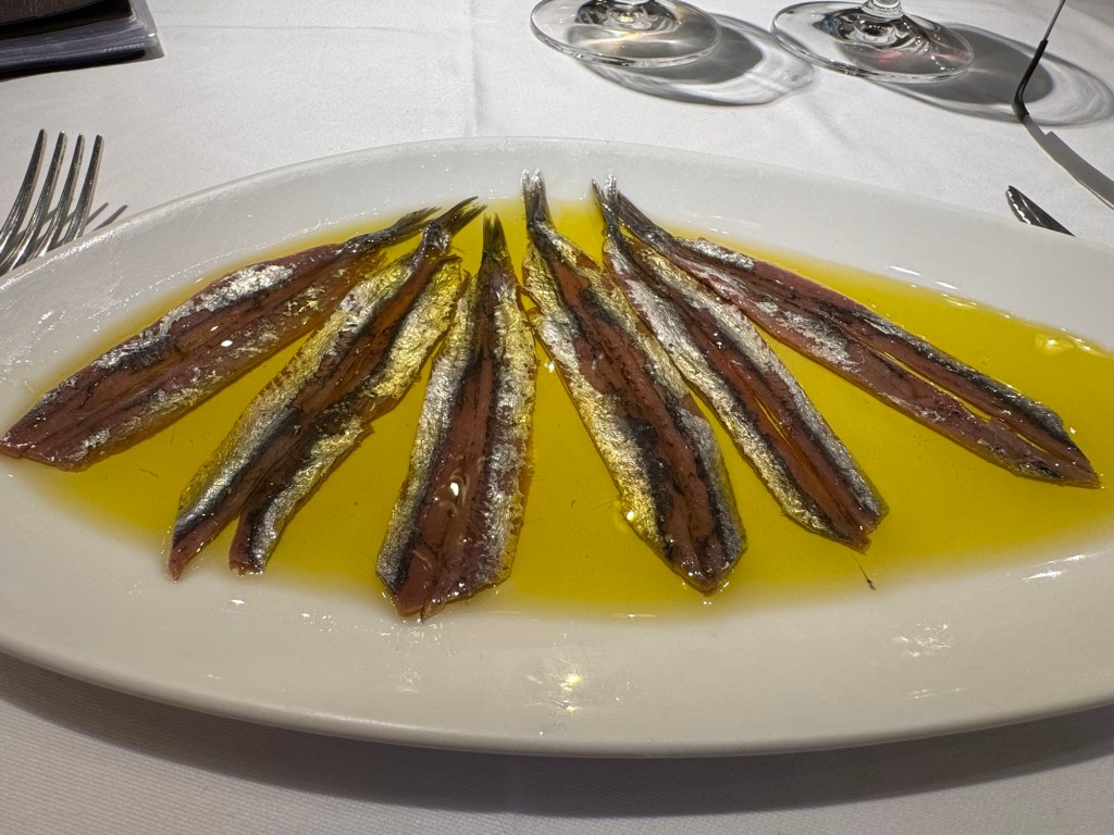 Before dinner, I walked around areas outside the old town and corniche. Dinner time in Spain still starts around 8:00 PM. One can taste pinxtos (aka tapas) at happy hour and make a meal of them. I opted for an early dinner at Casa Gandarias down the street from my pension located across from La Vina, a famous bar in Old Town. I could not resist the anchovies (with a glass of Albariño) and the roast suckling pig (with a glass of Rioja) which I first tasted 52 years ago at Casa Botin in Madrid. No dessert.