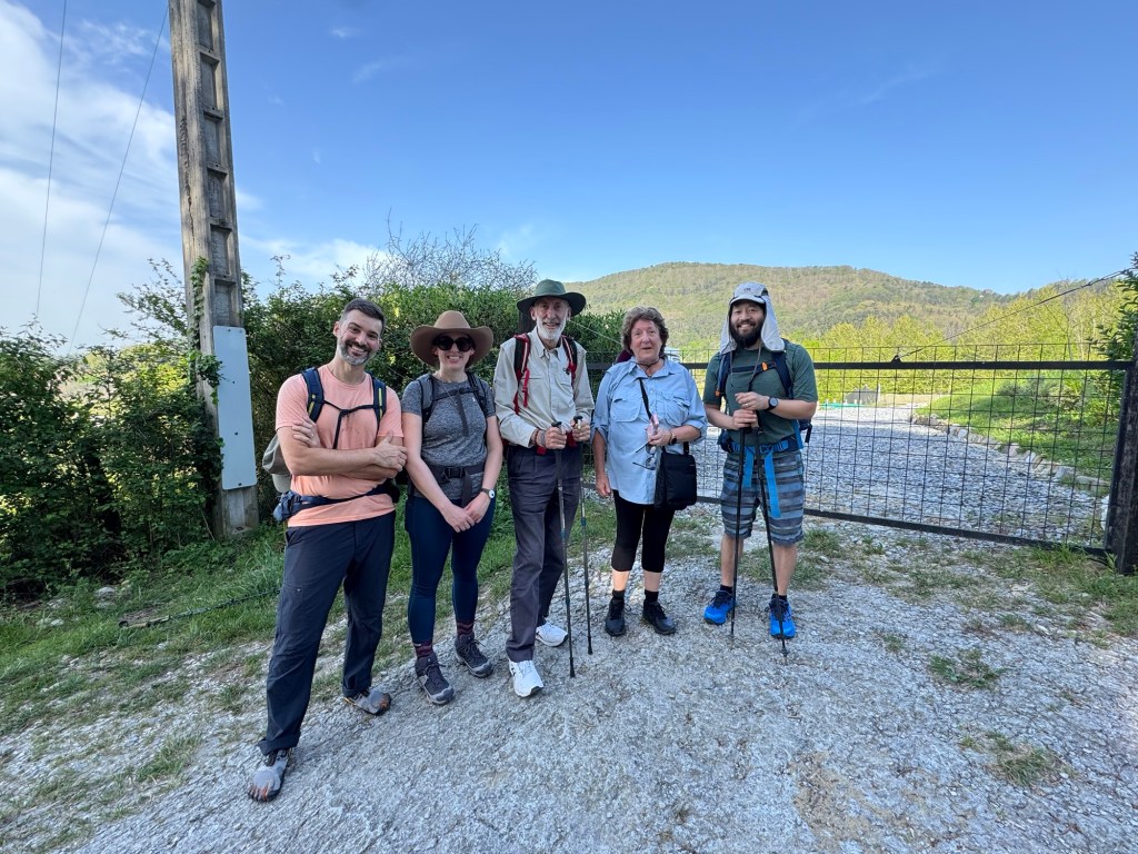 At the edge of town, I spotted a group of pilgrims. I followed them as we left the main road for a dirt road that cut through farm land. I caught up with them. Four of them were Australians; one, a fourth generation Japanese American who grew up in Gardena, CA and now lives in Basel, Switzerland. All but one had doctorates; the other an MD. They are walking the entire Camino del Norte over the next two months.