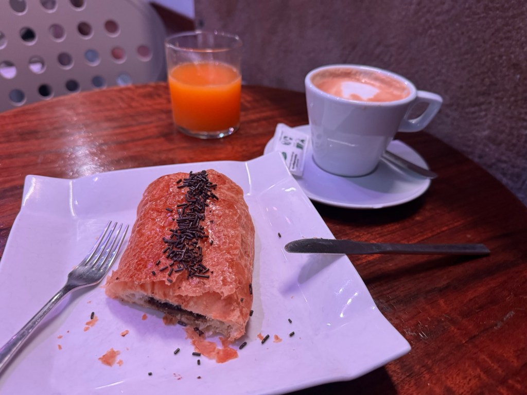 My breakfast bar was one of the earlier openers in Old Town. Jon served up an excellent cup of cafe con leche, freshly squeezed orange juice, and my choice of a flaky chocolate croissant. Even a humble bar serves up a croissant that meets the highest standards.