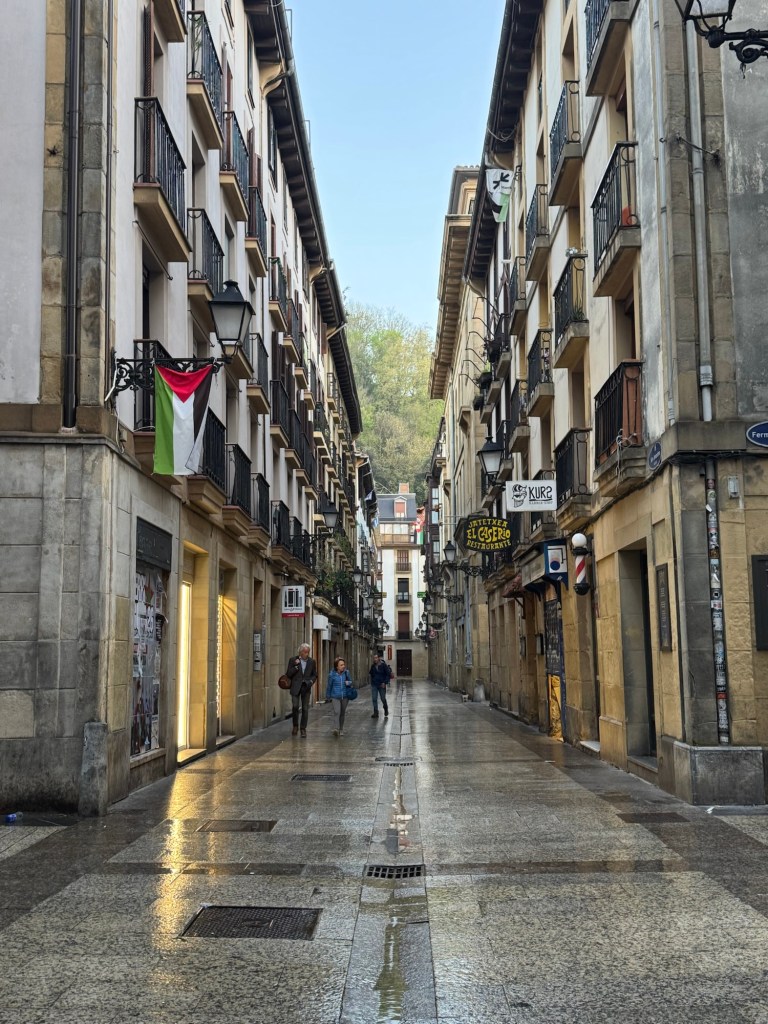 Early morning is clean up time in San Sebastián. A few people are on their way to work at 7:30 while men and machine sweep up and hose down the Old Town. So quiet after a busy evening of socializing over drinks and pinxtos.