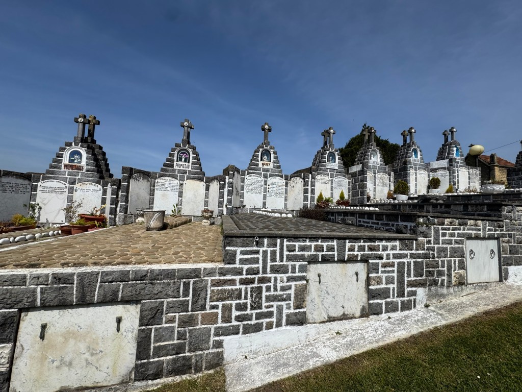 Back to the present while walking just out of Donestia, Antonio from Malaga called out and l asked where I was headed. To Santander, said I. He was cycling there too and beyond to Santiago. He will get to his destinations faster than I. But his experience will be different than mine. I wonder whether he stopped at the cemetery on the downslope while entering Orio? Probably not given the speed that I observed bikers speeding down the hill.
