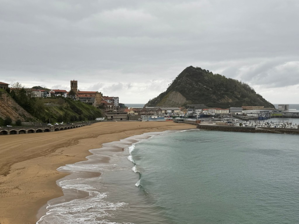With complete rain gear on, I briskly walked out of Zarautz with joggers, runners, and bikers. The surf was up but no surfers. It was misting, windy, and cold unlike the past two days. Such weather creates its own mood.