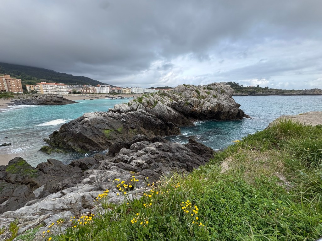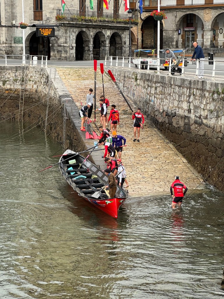 Castro-Urdiales was a surprise sleeper. Beautiful setting, interesting history, good food, nice people. As I started back on the Camino, young men were putting a boat in the water. Rather than a crew of 8, this one had 12. Must be a particular Spanish boat used in competition.