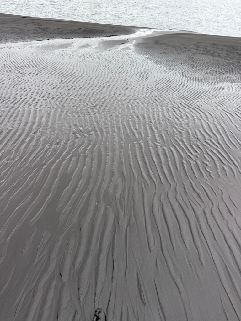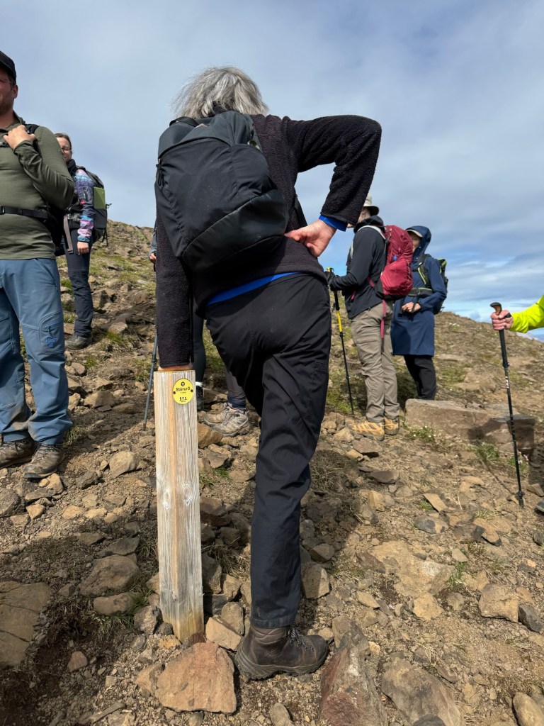 Unlike my trepidation on the canyon walk, I pushed to the summit. Physically not a problem, all mental about heights. The panorama at the top was something to behold. The lava field spread in front of us. The mountains had bold outlines in relief. The sequence of photos below starts with the trail sign at the beginning of the final ascent until the last picture showing the mountain from below taken next to the “mother of all gas vents.” Yes, it smelled.