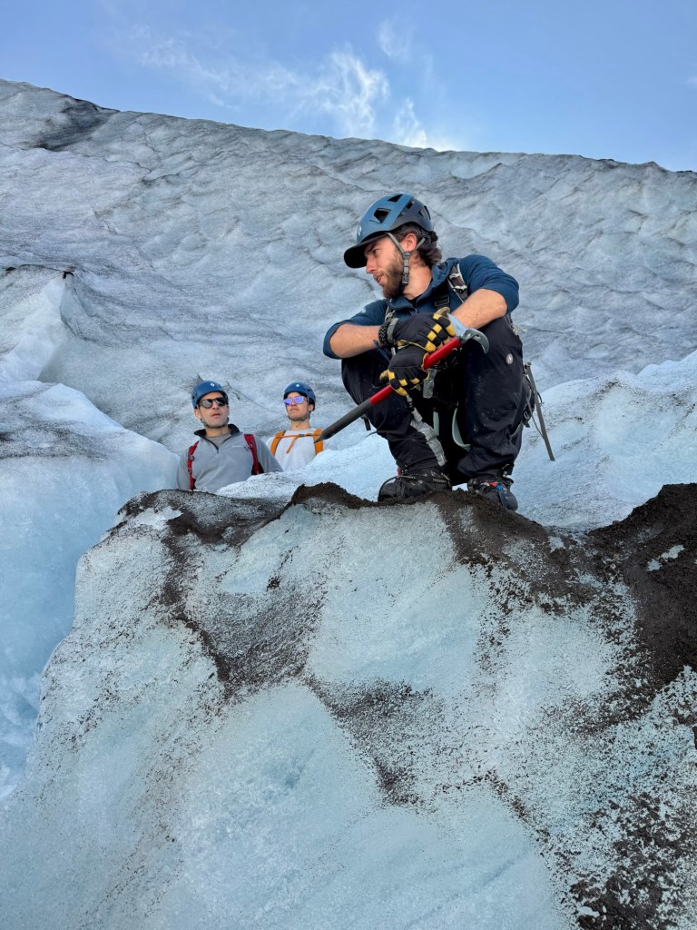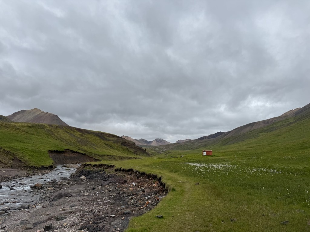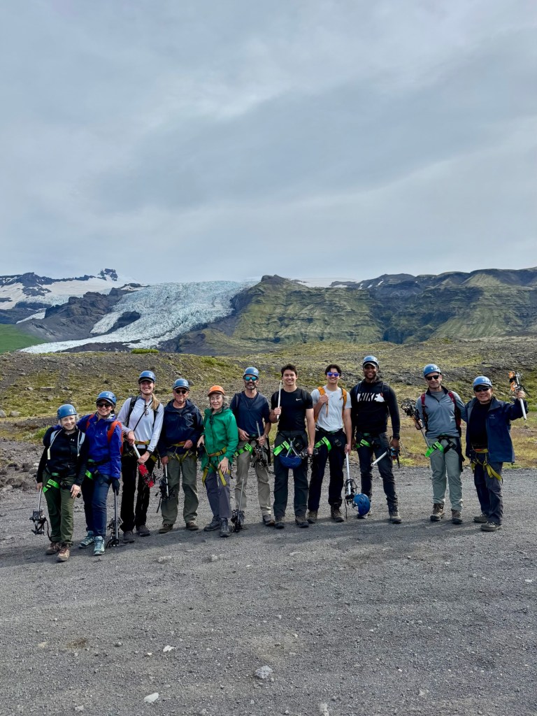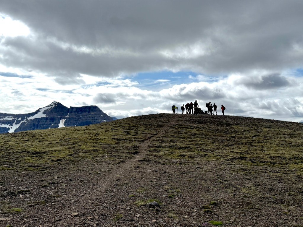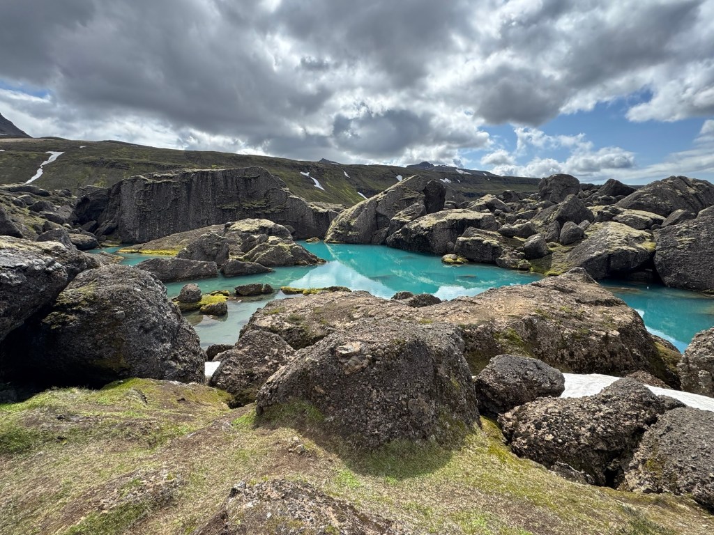 By noon, we arrived at Landmannslauger, a camping grounds and trailhead to climb the Blahnukur which overlooks the lava field, Laugahraun. We started off walking next to a river that is astride the lava field. We then climbed steeply until we reached the summit. The views were magnificent that were even more so because of the multicolored hues of the surrounding mountains.