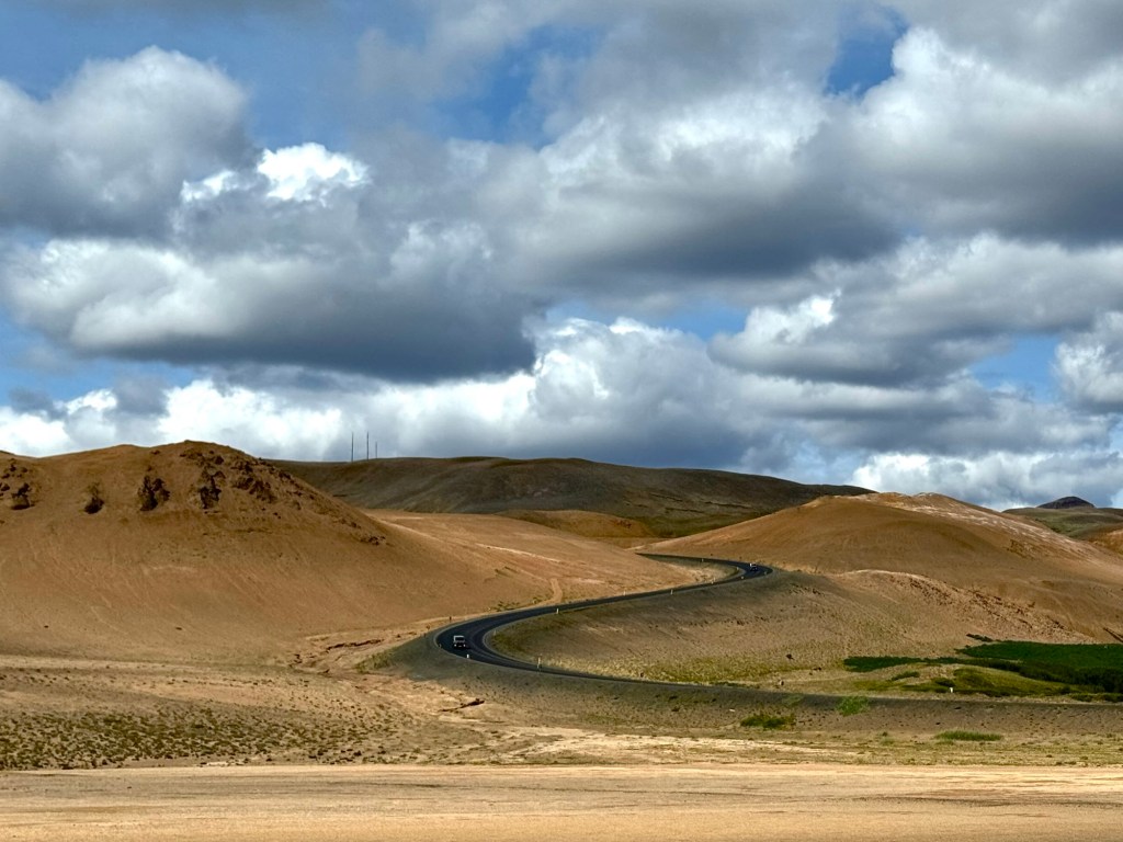 Soon after the turn, I spotted a mountain that stood out almost by itself — Mt Laki. Imagine that we walked in its cauldron the day before. Gives another perspective on the heights that we climbed.
