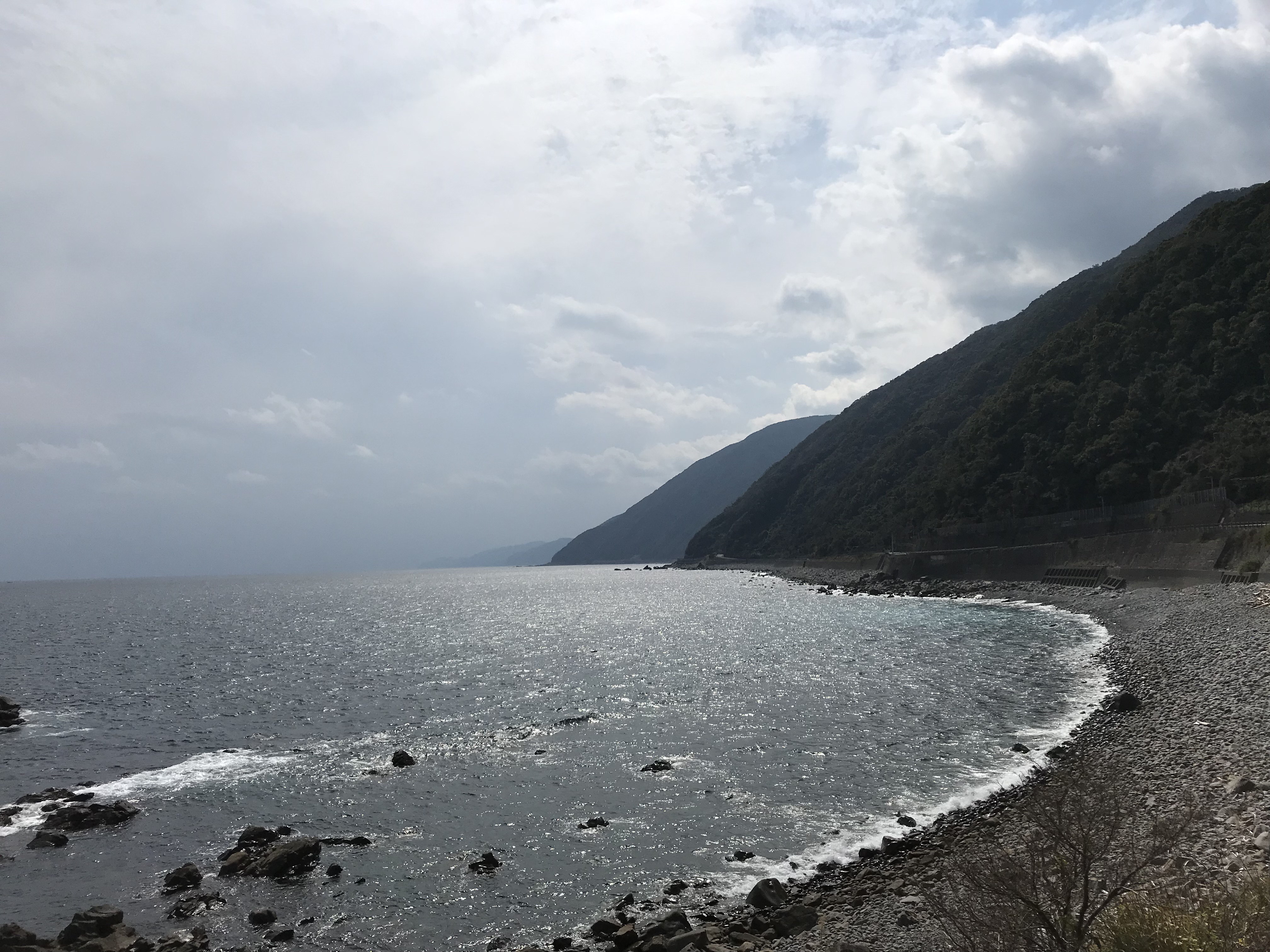 The walk continued with some peeks of the ocean in between hills covered with trees and shrubs. A few hearty surfers were bobbing in ocean waiting for their wave. The coastline is dramatic and then I had to bear down to find Micchan’s place by the ocean. 4 PM was coming up.