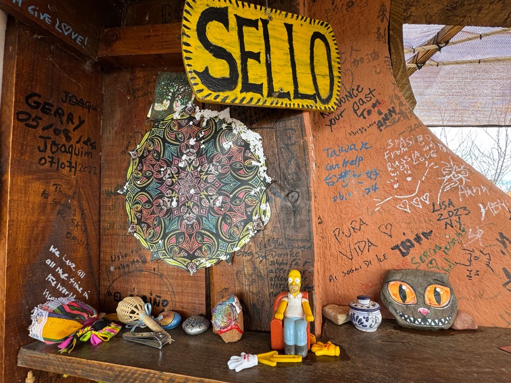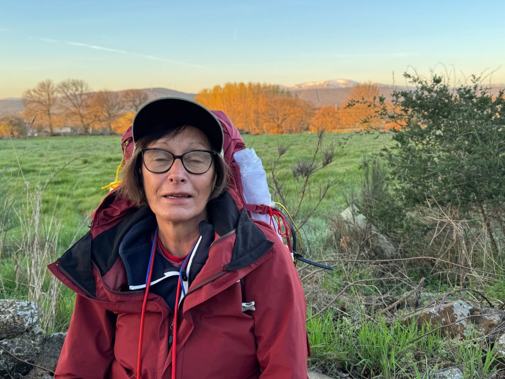 In addition to human pilgrims, canine ones walked alongside them. Remember Duna from the start of the hill climb out of Castrojeriz and chance meeting in Sagahun? Here’s a dog that is traveling rather than walking the Camino. I think its name fits her — Nana — really?