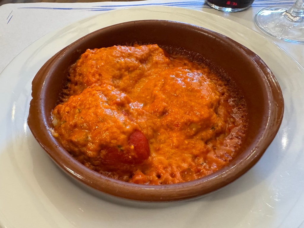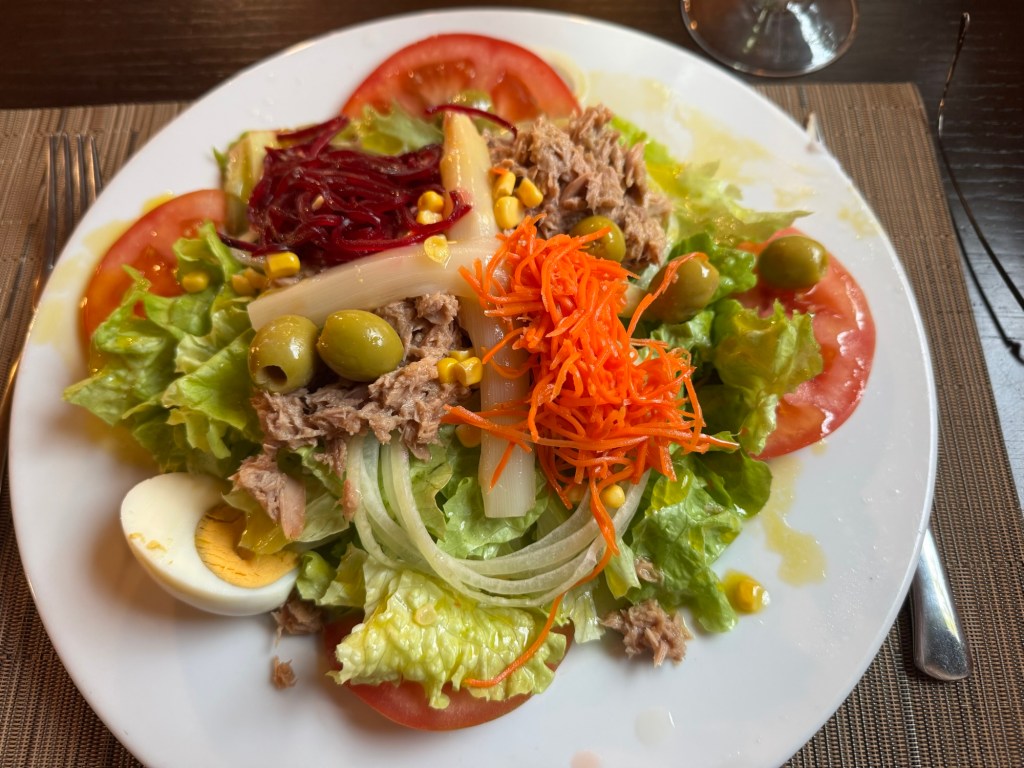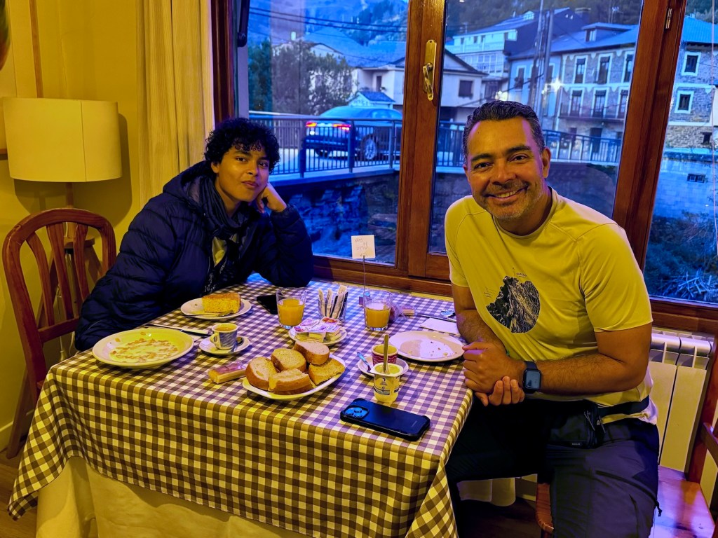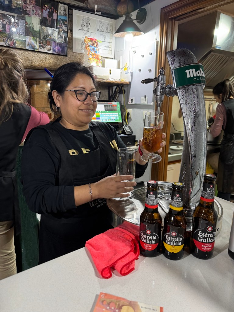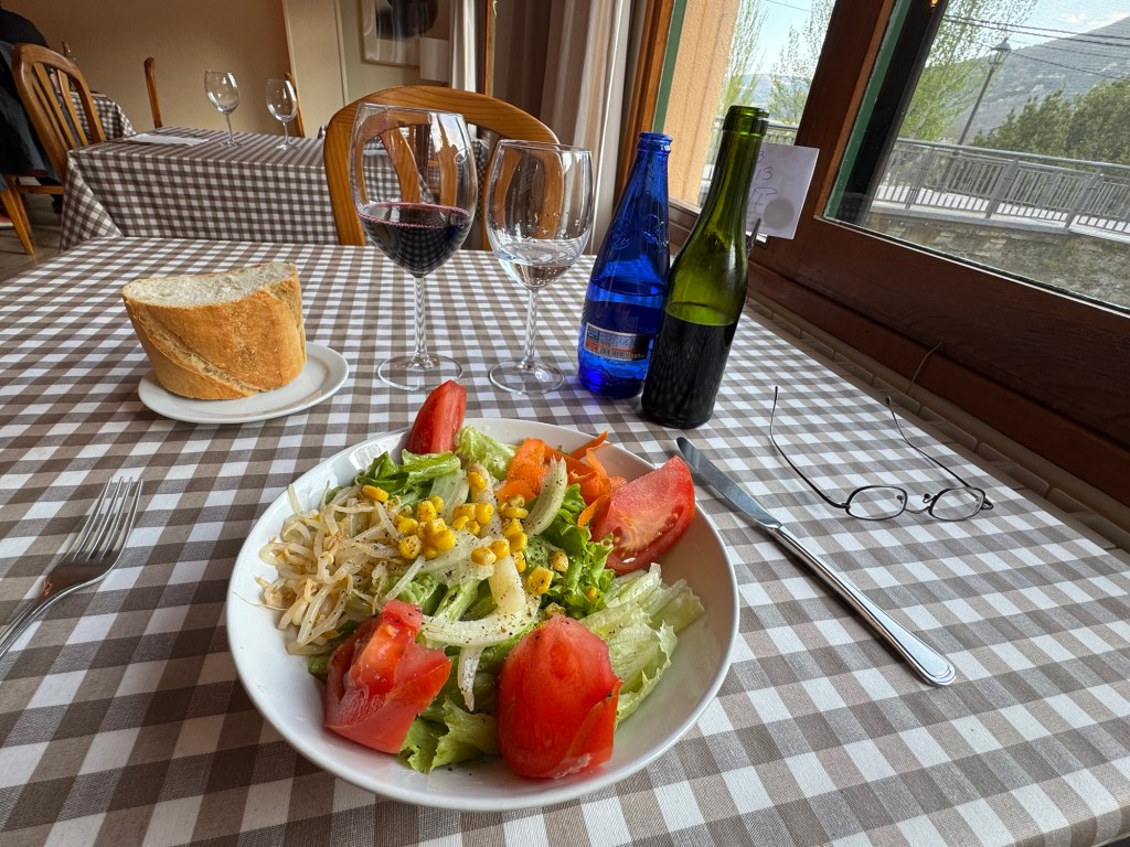 Everything including dishes not pictured (croquettes and Andrew’s beef stew) were scrumptious. Casa Alongos is the #1 rated restaurant in Melide. We agreed. Reservations recommended especially during Camino high season. Every table was taken except the one that I reserved.