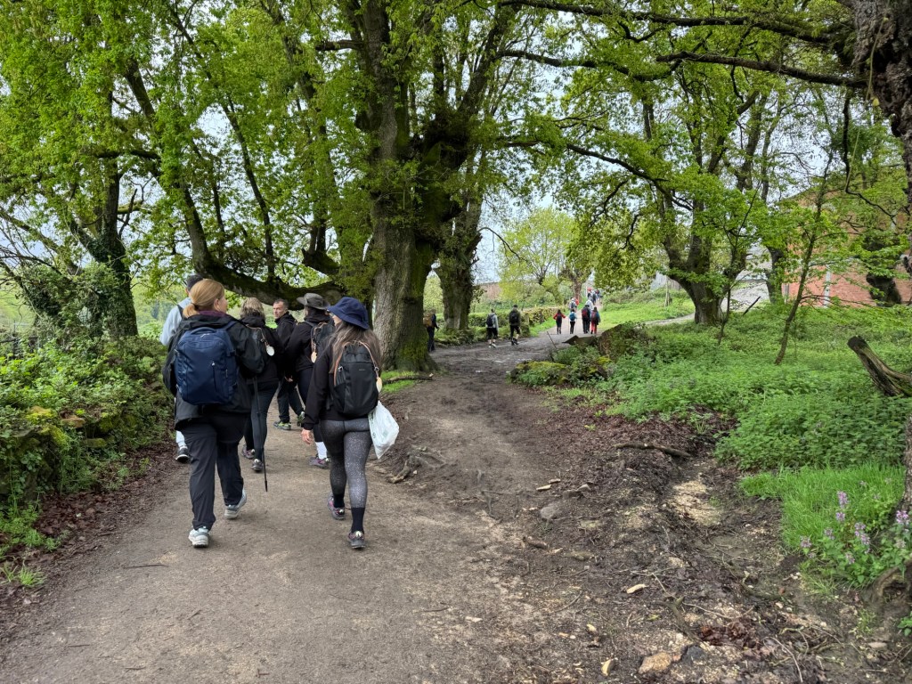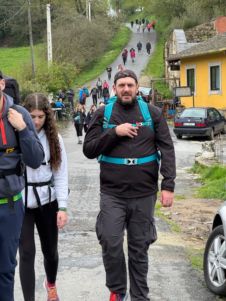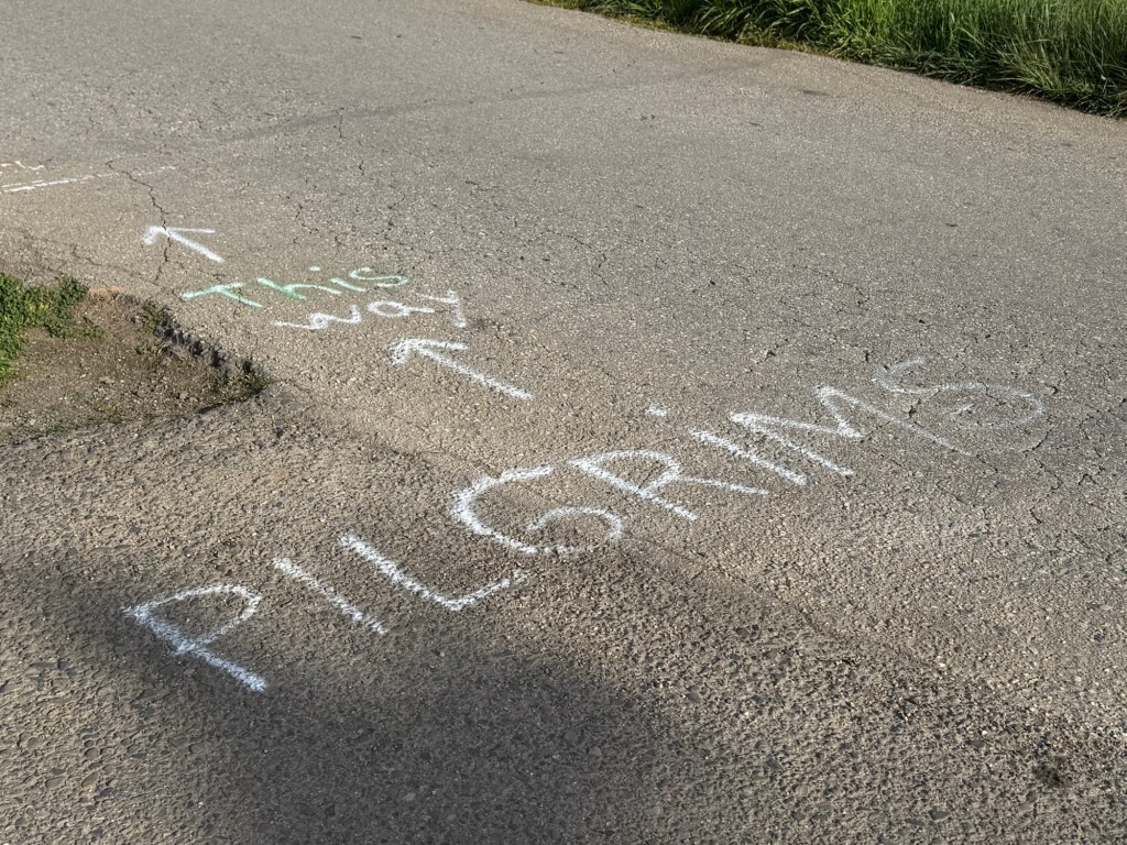 I left town with the swarms of people. Some pilgrims got the memo to wear the same socks — clearly newbies.