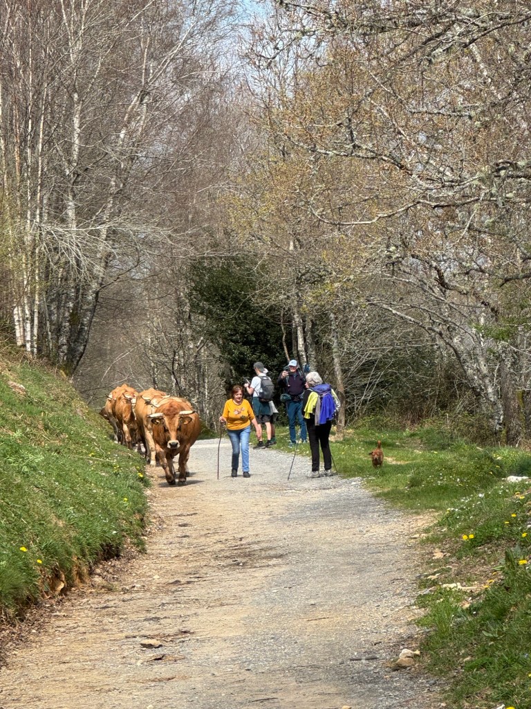 The blog can’t end without dinner. I had the menu at the hotel. Salad was not on the menu so I chose the lentil soup, followed by osso bucco Galician style, and finally carrot cake with a chocolate icing top ( a new twist to the classic). All were good and acceptable. Casa Algonas should be the restaurant of choice when in Melide.