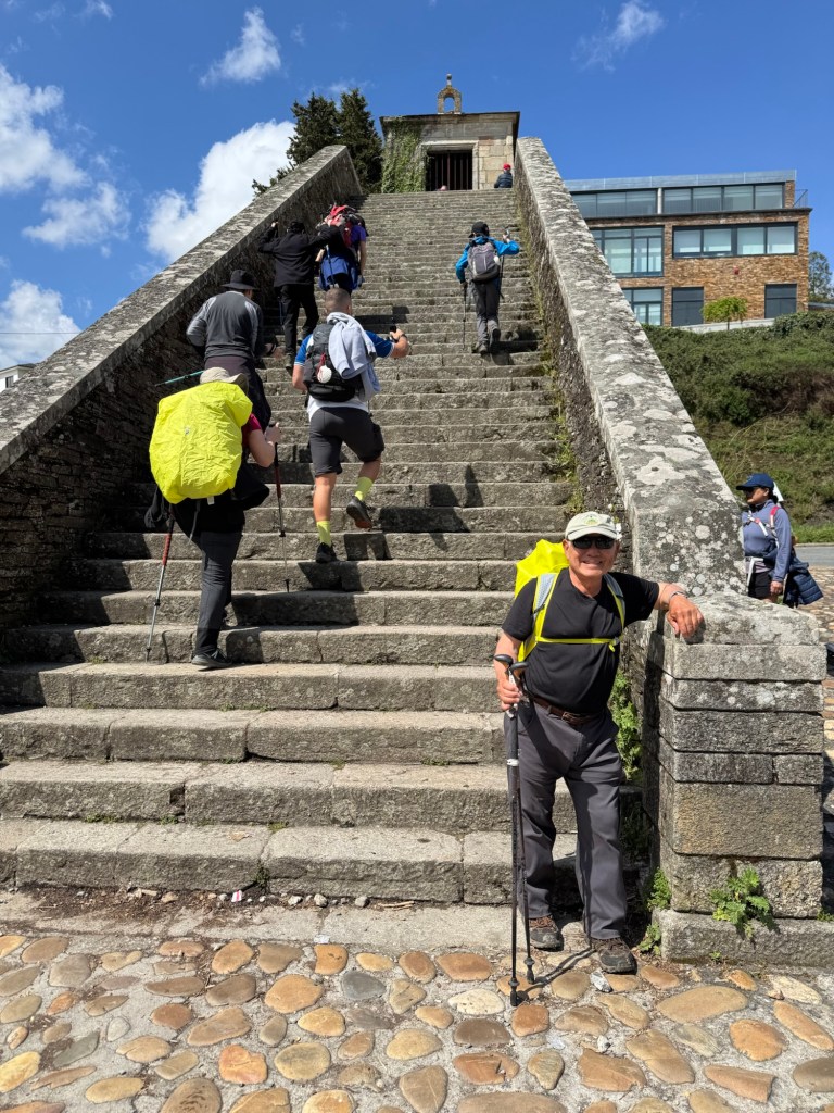 As I reached the bridge at Furelos, I ran into Mandy Chai whom I met at yesterday’s breakfast. This bridge must be one of the top photo op site on the Camino Frances. She encouraged or is the better word, chided me into having my photo taken with the bridge in the background. Voila, Ron at Bridge.