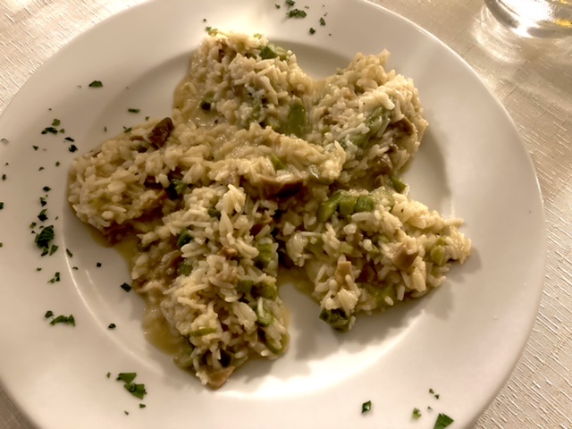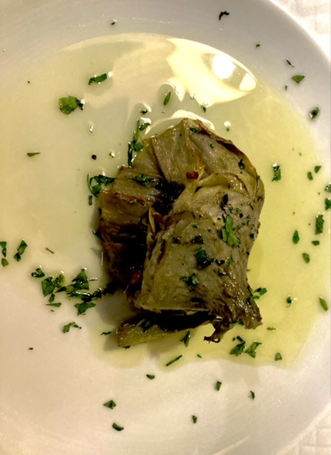 Partway through our dinner, a couple sat next to us. Somehow we started to talk. The conversation turned to who we were and was this our first time in Rome. It turned out that the woman was leaving alone in a few days for Burgos to walk the Camino for three weeks. She wanted to know if we had done so and what were our experiences on the Camino and VF. Ask a question, and get a speech. I restrained myself; yes, I did. (Monique chuckled after reading this sentence.) She did most of the talking in Italian. The upshot was that our dining acquaintance was more thrilled to go after our conversation although her husband was hesitant about her impending trip. I hope that we had done our good deed for the day.