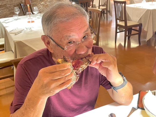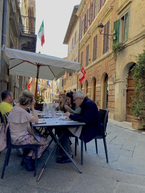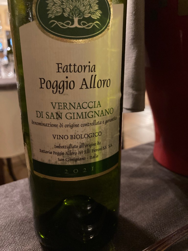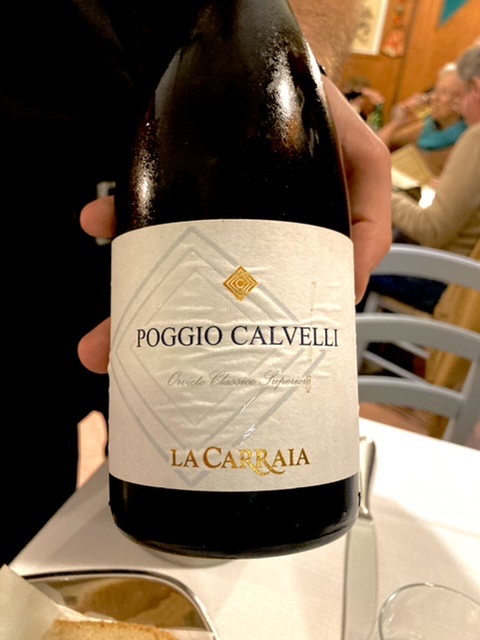 An Orvieto Classico Superior 2021 was our wine. The taste began like a smooth white Burgundy but ended with a dry flinty finish like a Sancerre. What a delight to taste a wine that subtly changed from the first to the last moment. Twenty Euros. The wine list included another fifteen Orvietos to choose from.