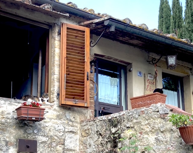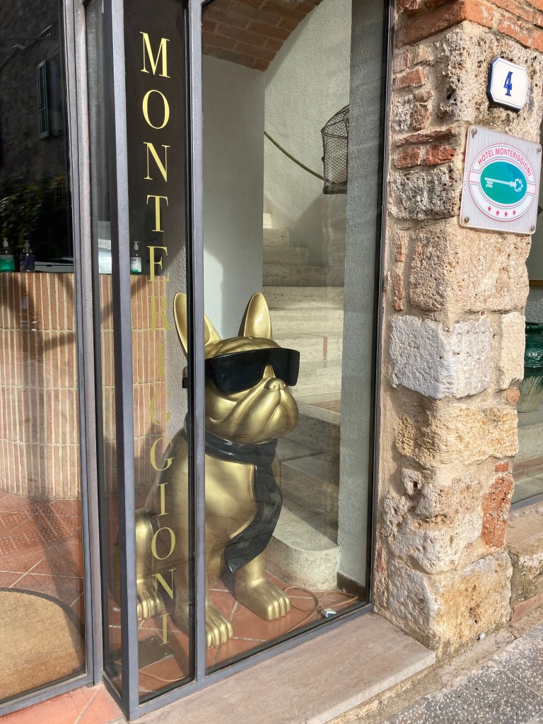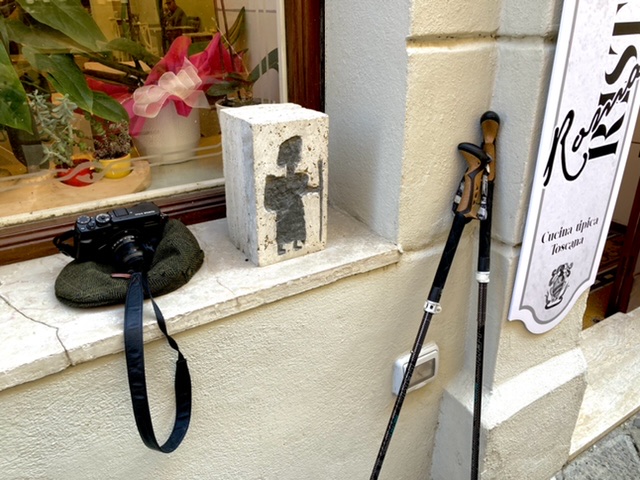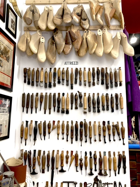 Lunch was had at the Folk Osteria up the hill on the Via Cavour — simple but tasty. Rich chose one of the specials of the day — pasta with porcinis. I had the lamb’s liver stewed with artichokes. We were satisfied. While window shopping on our way back to our hotel, we walked in Federico Badia’s, a shoemaker’s shop. A pair of custom made shoes cost 3000 euros. He makes only 15 pairs a year. His wife creates belts and bags for sale. The leather was fine and smooth. The aroma was intoxicating. Check out his website. After putting our heads into a few more shops, we decided to relax for the afternoon after having our copettas of gelato.