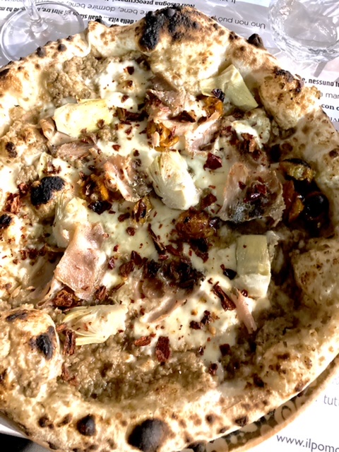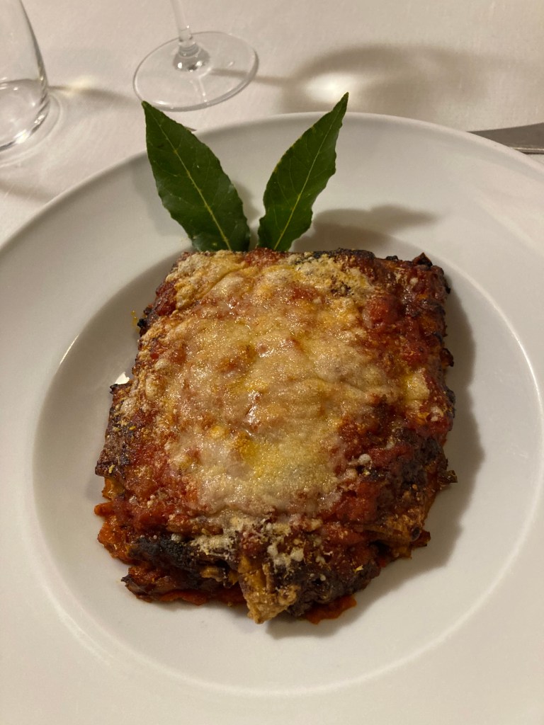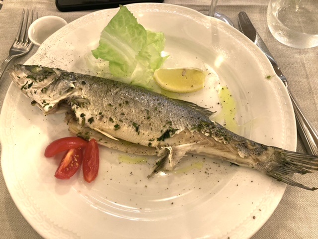 Dinner at La Palombo met our high expectations. The two dining rooms were filled — locals and tourists alike — by 8 PM. The wait staff was buzzing around with purpose. We sat next to the bread bin. It seemed that a server was cutting bread on the minute. Even with this level of activity, we were never rushed when ordering, dining, or completing our meal. The staff was seamlessly doing their jobs like a chamber group without a conductor.