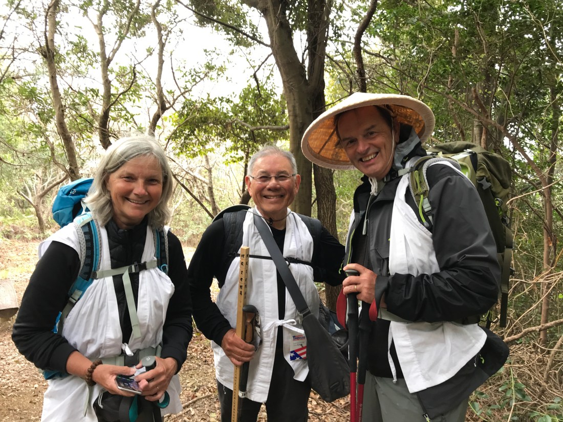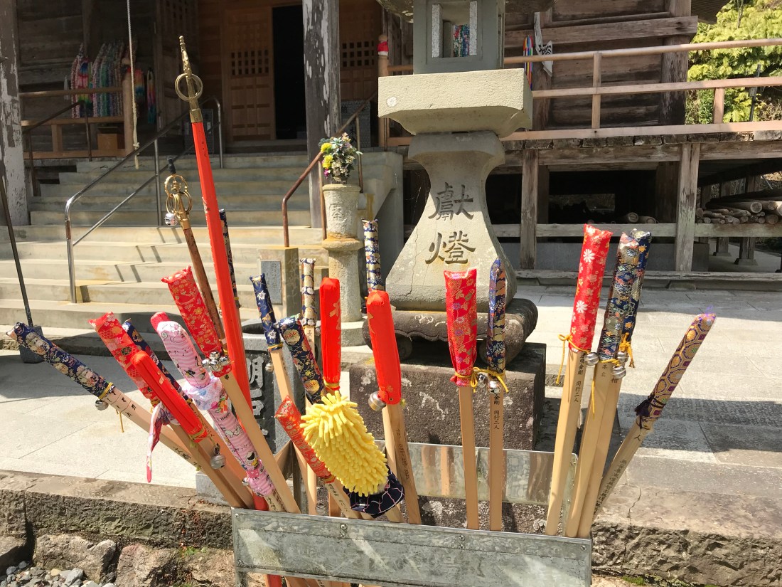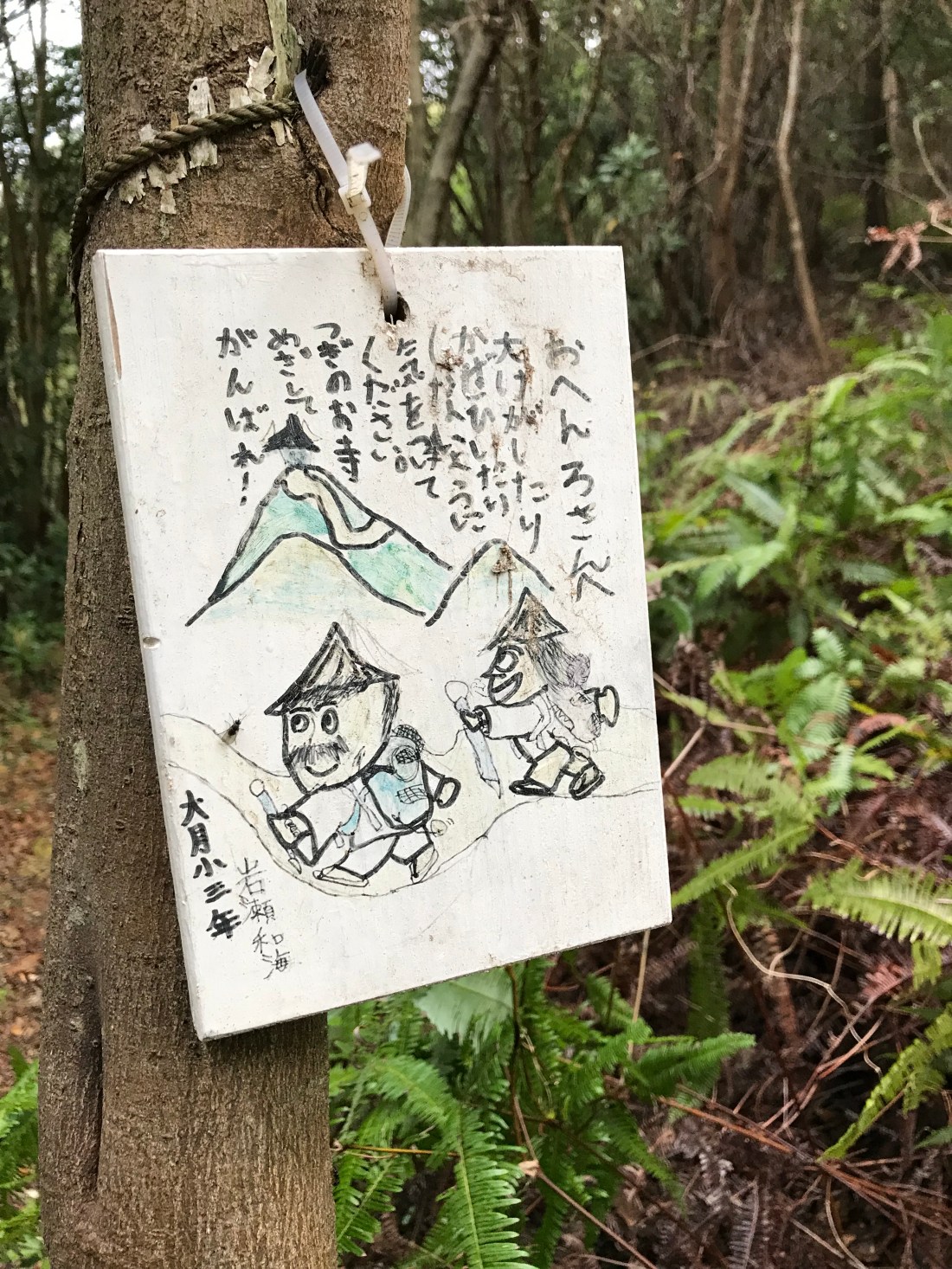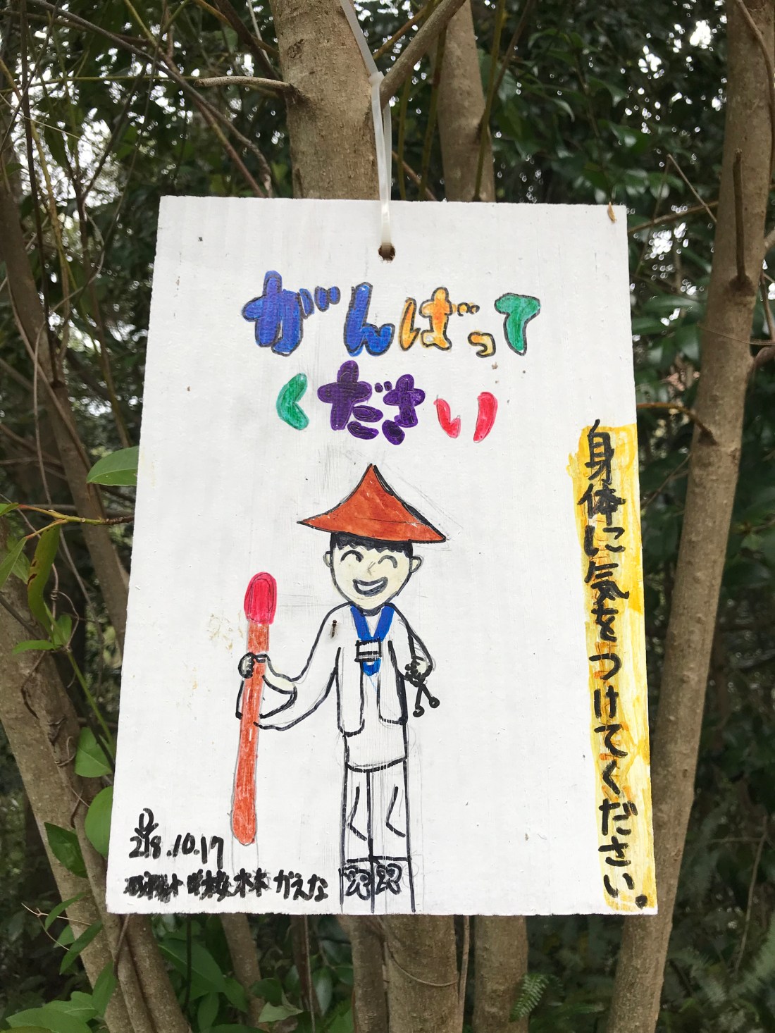 We visited Temple 41, Ryukoji, just as the rain stopped. We met Miki again; she was the woman featured on a Day 24. We took the bus to get to Uwajima City; she walked all the way. One tough lady. We also met up with Matsuo-san whom we met four days ago. He was Marc from Switzerland’s walking partner. You may recall that Marc decided to end his journey because of severe blisters. Matsuo-san was walking with Marc’s staff. You can see Marc’s name written of the side of the staff. What a lovely gesture to carry his staff, his spirit, for the rest of the journey.